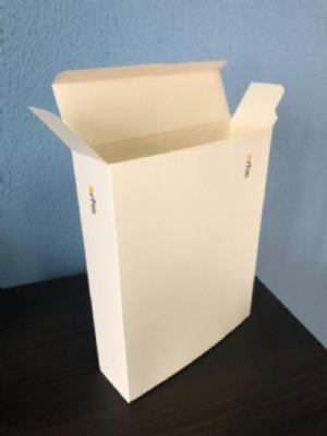Papel cartão Duplex 350g Interior/Kraft+película anti-absorção e Exterior/Branco.